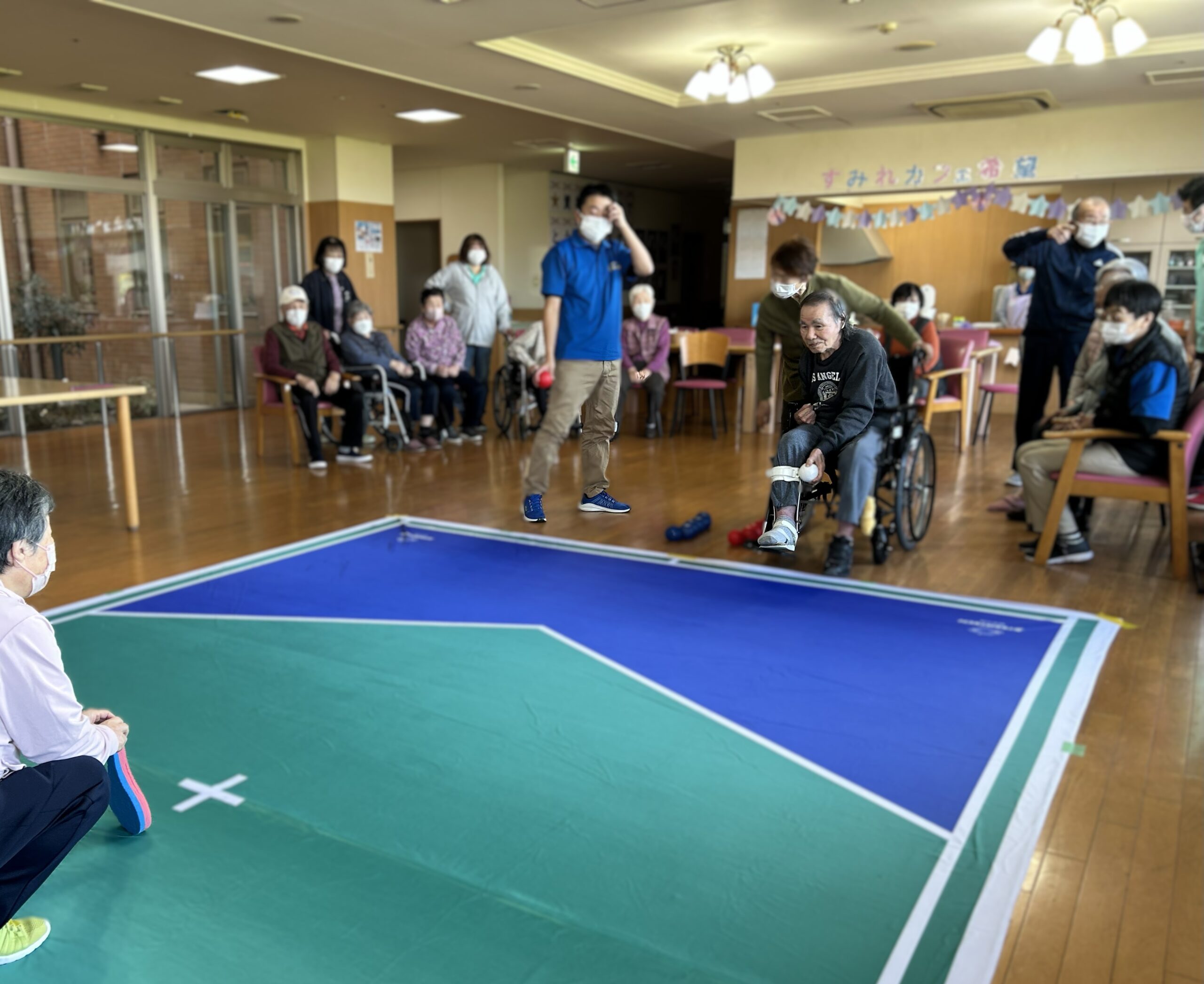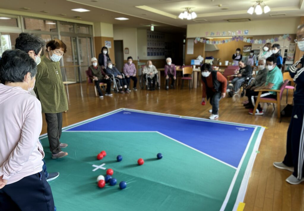 利用者様、地域の方、職員が混合チームを作り、みんなでボッチャを楽しみました🥰